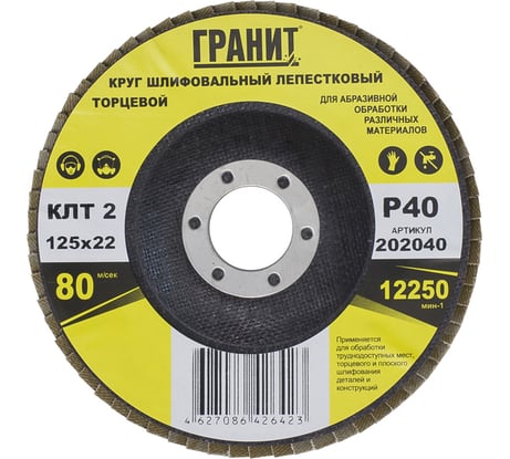 Отзыв Круг шлифовальный лепестковый торцевой 125х22 мм, P40 Гранит 202040-1