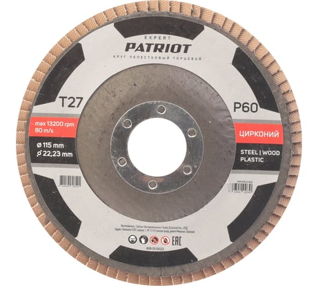 Отзыв Круг лепестковый торцевой EXPERT 115x22.23 мм, P60, цирконий Patriot 819010022