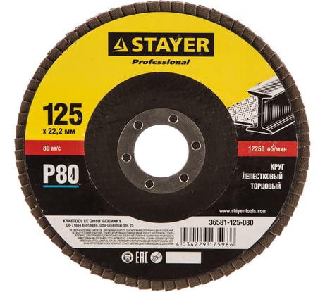 Отзыв о шлифовальном круге STAYER PROFI зерно-электрокорунд нормальный, тип КЛТ 1, P80, 125х22,2мм 36581-125-080