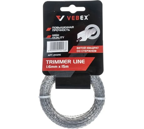 Отзыв Набор лесок для триммера VEBEX витой квадрат со стержнем, 1,6x15м, 6 шт. АГ210216