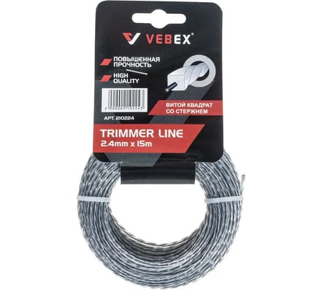 Отзыв Набор лесок для триммера VEBEX витой квадрат со стержнем, 2,4x15м, 3 шт. АГ210224