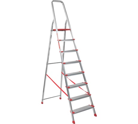 Отличная стремянка для профессионального использования! 8 широких ступеней (130 мм) обеспечивают комфорт и безопасность даже при длительной работе. Металл прочный, конструкция устойчивая, резиновые накладки предотвращают скольжение.