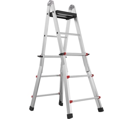 Самые лучшие лестницы для монтажных работ. Устойчивость прекрасная, все замки надёжные и простые в эксплуатации, за более чем 10 лет работы с такими лестницами (у меня из 3) ни одного нарекания, в полностью разложенном состоянии выдерживает до 150 кг нагрузки (в паспорте заявлено max 120 кг) , проверено лично и неоднокартно, можно работать на лестничных маршах разкладывая одну половину больше вторую меньше, ножки обрезиненые не скользят от слова совсем (разве что на льду). К недостаткам условно можно отнести её вес, но это плата за надёжность, ну и на сегодняшний день ценник конечно просто космос, первую такую лестницу лет 12-14 назад покупал за 11 т.р. вторую года 3 назад за 25 т.р. ну а сегодня ценник просто нет слов..