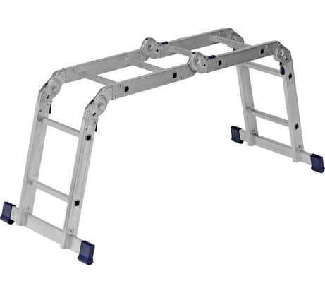 Брал для сборки кровли 2х этажного домика. Лестница моментально выработала люфты в местах крепления гарниров (2 заклёпки явно маловато). Для П-образного использования поверхность должна быть не скользкой, иначе лестница начинает разъезжаться. Из-за люфтов в местах препления шарниров лестница приняла форму дуги (хотя ставлю как в инструкции - 70гр). Ступени очень узкие, не сесть (больная спина, иногда очень тяжело работать стоя). Короче лестница так себе, но: 1) высокая. Хотел 4х7, но их небыло. Эта лестница даёт возможность собирать кровлю на высоте 6 метров 2) лёгкая. 15 кг, даже для моей спины, вещь вполне подъемная. Думаю ступени узкие в угоду малому весу. 3) Малогабаритная. Высота полтора метра в сложенном виде. Со свистом входит в мой сарай. 4) прочнее чем кажется. В положение "Л", с перекинутой полкой из 2х досок (положение "А"