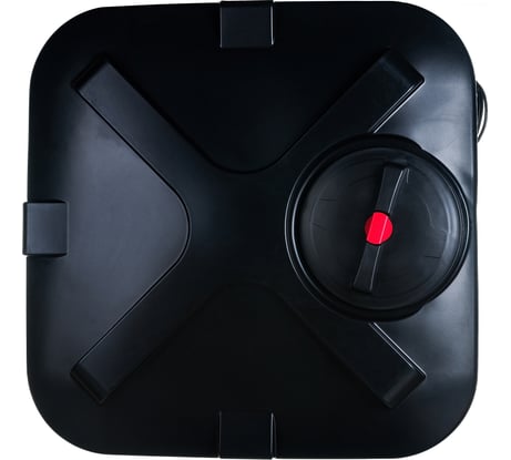 Плоский бак, чёрного цвета. Квадратный корпус с рёбрами жёсткости. Хорошо держит форму даже под очень жарким летним солнцем. Вода в баке нагревается даже в пасмурную погоду, а не только от прямых солнечных лучей. Для лейки в днище надёжно вмонтирован латунный отвод.