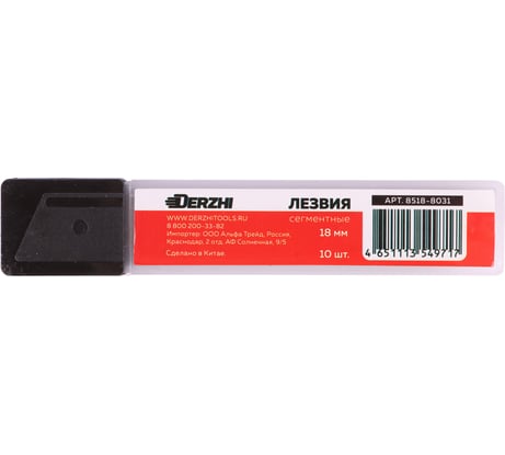 Отзыв Лезвия для ножей сегментные 18 мм, 10 штук DERZHI 8518-8031