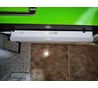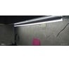 Матовый рассеиватель, отдельных светодиодов не видно. В комплекте два крепления (скобки, саморезы, дюбели), провод с вилкой для подключения, провод с разъёмами для каскадирования светильников, заглушка на неиспользуемый разъём.
