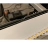 Внутри светильника приклеены две светодиодные ленты, по 60 светодиодов SMD 5730 на каждой. В торцах светильника в пластиковых заглушках установлены два драйвера, по одному на каждую ленту. И драйверы, и ленты, и даже светодиоды приклеены криво и небрежно. Но на работу светильника это никак не сказывается, так как ленты почти не нагреваются. Длины выходящего шнура вполне хватает для подключения питания. Крепить светильник можно и на потолок, и на стену, и сделать это легко с помощью двух крепежных скоб, входящих в комплект.