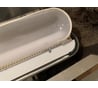 Отличная яркость светильника (3300 Лм) и длина самого светильника (1,5 м). При такой яркости и длине светильника рабочее пространство стола освещается просто идеально (я прикрепил на потолок), так как даже наклоняясь над столом тени от светильника почти нет из-за длины и полукруглого пластикового рассеивателя.