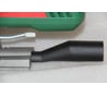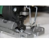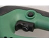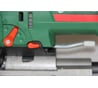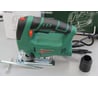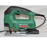 Модель с большим функционалом: есть лазерная направляющая (работает от батареек, надо покупать отдельно), маятниковый ход, замена пилок без использования каких-либо ключей. Регулировка числа оборотов от 0 до 3000 1/мин осуществляется с помощью специального регулятора на кнопке. Угол реза регулируется с помощью специальной рукояти, без каких-либо ключей. Есть обдув рабочей зоны и подключение к пылесосу через специальный патрубок. Пластиковая накладка на подошву для пиления ламинированных поверхностей. Заявлены пиление древесины до 120 мм и стали до 8 мм – впечатляет, хотя на практике редко применимо. Мощность 750 Вт. Комплектуется двумя пилками (дерево и металл) и пластиной против сколов на ламинированном ДСП.
