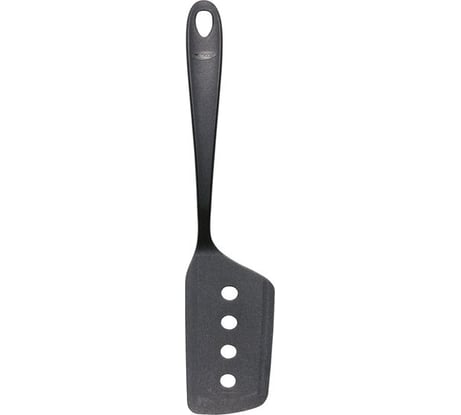 Лопатка Фискарс серии Эссентиал. Очень интересного и продуманного дизайна, среднего размера (ложка из этой серии длинней), приятно держать в руках, средних размеров (везде подлезет), не прямая, вместительная, удобная ручка (слегка вогнутая, не плоская), края немного заостренные (что-то вроде спусков), дырки ровные и не мелкие (мыть, чистить удобно), всё жесткое и ничего не прогибается, хорошо моется, можно использовать не по прямому назначению, например, в 3Д-печати или в воспитании.