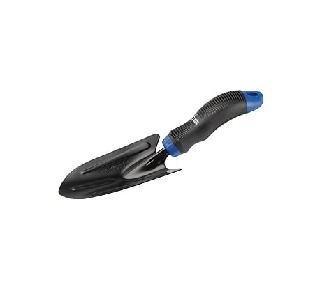 Ухватистая резиновая ручка, крепкий жесткий совок, хорошо покрашен - краска не отскакивает, неплохо очищается от сырой земли.