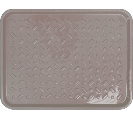 Качественно сделан, пластик не хлипкий, удачный размер (подходит для двух пар обуви), спокойного серо-коричневого цвета. Может использоваться также в качестве подставки под разные домашние мелочи, а также поддона для слива воды и т.п.