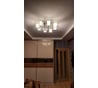 Нормальной инструкции по сборке нет. Это не сильно напрягло, но всё же. Соединение вертикальных стержней с горизонтальными планками без жёсткой фиксации. Из-за этого на собранной люстре заметны небольшие перекосы от горизонтали держателей плафонов. Вся конструкция не получается жёсткой, монолитной - всё шевелится и крутится)