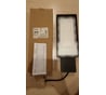 Долго выбирал уличный светильник на дачу. Не люблю светодиодные из-за их слепого "прозрачного" света. Глаза слепит, а поверхность не освещает. Особенно в дождливую погоду. Но этот светильник меня порадовал. Цветовая температура 3000К - это то что надо. Свет как от галогеновых фар автомобиля, желтоватый, очень приятный для глаз. Но не такой ядрёно-оранжевый, как от ДНАТ ламп. Мокрый асфальт освещает достойно. В описании товара, кстати, фото не его (наверно от 30-ваттного). 100-ваттный гораздо больше по размеру и светодиодов больше - смотри фото. 1 диод = 1 Вт. Упаковка весьма простая - коробка с наклейкой, инструкция. Крепление на консоль выполнено двумя отдельными дужками. На других светильниках встречал в виде закрытого колпака, который позволяет разместить клеммы внутри трубы как в монтажной коробке. Тут же возникла целая проблема, т.к. длина провода всего 35 см (а изолированной части и того 30), что при установке на стандартный кронштейн длиной 250 мм остаются очень короткие провода. А если кронштейн с трубой 350 мм и более, то соединение вообще будет внутри - как защитить от влаги непонятно. Либо нужно выводить провод наружу и где-то лепить монтажную коробку... Оптическая часть линзованная, каждый диод светит через овальную линзу, что рассеивает пучок в виде эллипса (КСС - широкая). Драйвер (производителем заявлен тип DOB - driver-on-boad) представляет собой плату, размещенную в прямоугольной отливке на корпусе светильника ниже оптики. Питание на плату с диодами присоединяется шлейфом. Блок питания капризный, требователен к напряжению - ниже 190 В не работает, светильник начинает мерцать. Все трудности с монтажом преодолел, светильник повесил на столб. Результат нравится. Посмотрим насколько его хватит. К сожалению, пока нет фотографий в полной темноте.