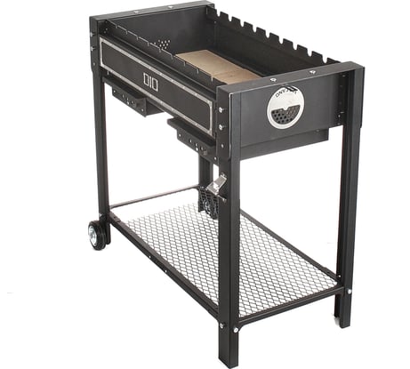 Добротный мангал с шамотным дном и регуляторами тяги.