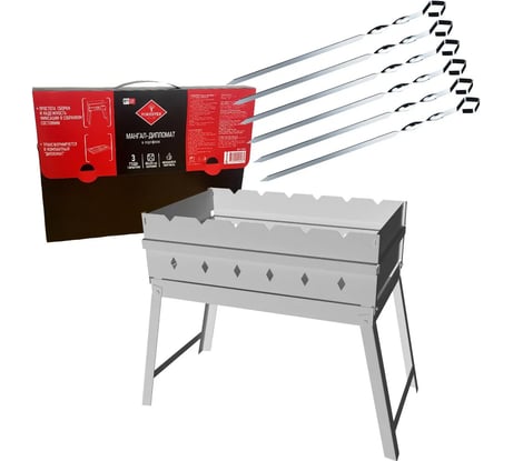 Быстро собирается и разбирается- не нужно складывать пазл, просто откинул ножки, развернул борта, закрепил крючками. Все детали собраны на стальные заклепки. При сборе главное не перепутать какая пара ножек складывается первой, иначе вторую пару можно согнуть. Металл потолще чем у одноразовых. В комплекте шампура , не из дешевого металла- не гнутся, не провисают.