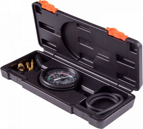 Не самое лучшее соединение резиновой трубки с железным наконечником. После закручивания шланга и замера компрессии не смогли выкрутить наконечник из колодца, так как с него слетел шланг. Также слетает резиновый колпачок при замере без закручивания, проблема устранена с помощью шайбочки. В целом неплохой набор для домашнего использования, но надо быть внимательным, чтобы не слетел шланг с наконечника.