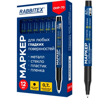 Отзыв Маркер для любых гладких поверхностей RABBITEX пленок, стекла, металла, черный OHP-70, КОМПЛЕКТ 12 шт., 0,7мм,, 152658