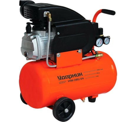 При равных прочих условиях у модели "Ударник УКМ 280/24" реально высокий самый главный параметр компрессора - производительность на выходе. Я нашел видеоролик с испытанием такого компрессора, а после покупки замерил всё сам. Получилось следующее: время накачки от 0 до 8 атм. = 1 мин 8 сек. Учитывая реальный объем в 22 литра, получаем 155 л/мин на выходе. По отзывам покупателей и видеообзорам, большинство компрессоров с мотором на 1,8 КВт. выдают на выходе 114-120 л/мин. и при этом некоторые из них много дороже данной модели. Автоматика работает четко. Собрано всё качественно, правда пришлось подтянуть пару гаек на клапане, а то немного сифонило. После этого оставил на сутки под давлением в 6 Атм. - не упало ни на каплю.