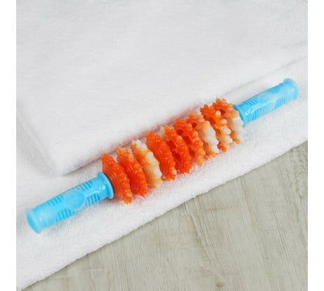 Отзыв Массажер для спины ONLITOP пластик, скалка 9 колес, 38х6.5см, голубой/оранжевый, шильд ОТ 3953832