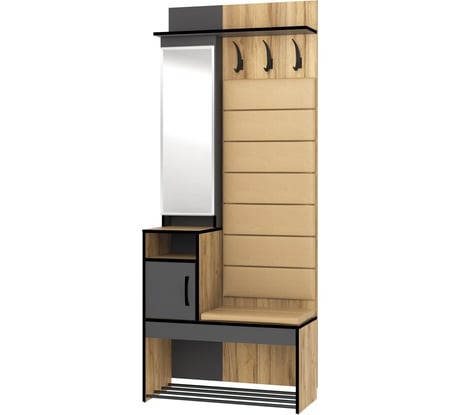 С одной стороны прихожая компактна, что для маленьких прихожих это самое главное и в тоже время достаточно многофункциональна: сиденье, зеркало, полочка. Цвет компонентов прихожей разный, поэтому хорошо подходит по цвету под многие варианты. Предусмотрено также крепление от опрокидывания конструкции. В общем, конструкция прихожей достаточно удачная. Понравилась.