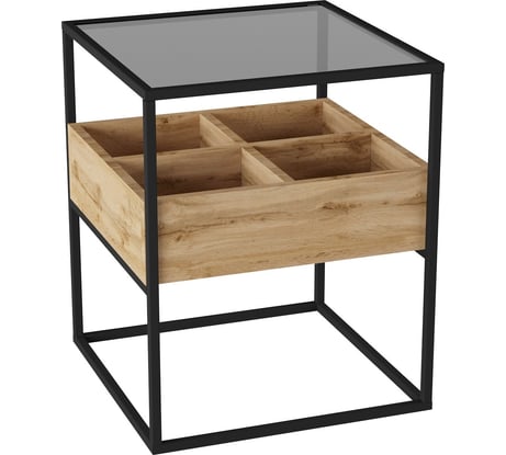 Используем в качестве журнального столика. Стекло даёт ощущение воздушности, удобные ящики-карманы для всякой мелочи.