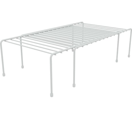 Поперечины (обрешетка) тонюсенькие, но припаяны умело, с высеченными ложбинками на верху П-образных стоек. В принципе данную полку можно укрепить, положив поверх нее крепкую легкую дощечку, а ножки обмотав внизу резиновой (самовулканизирующейся) изолентой, тем самым увеличив пятки. Свои колпачковые пятки в комплекте дурные, скользят по поверхности стола. Фото прилагаю.