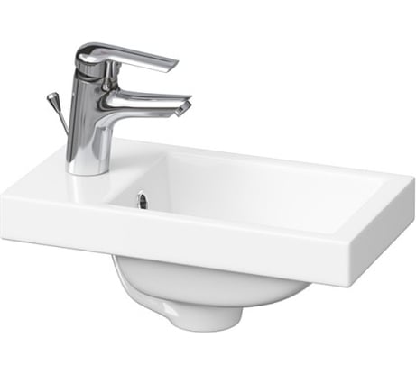 Отличная маленькая раковина, пришла без сколов. Еще не эксплуатировали. Тумба этой же фирмы подходит идеально (заказывали отдельно)