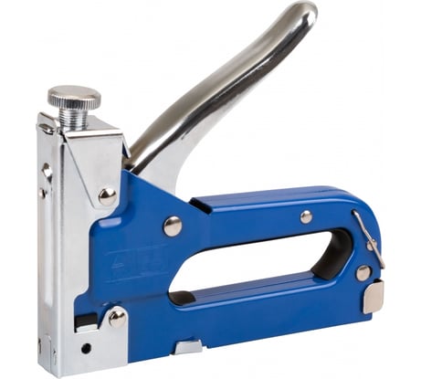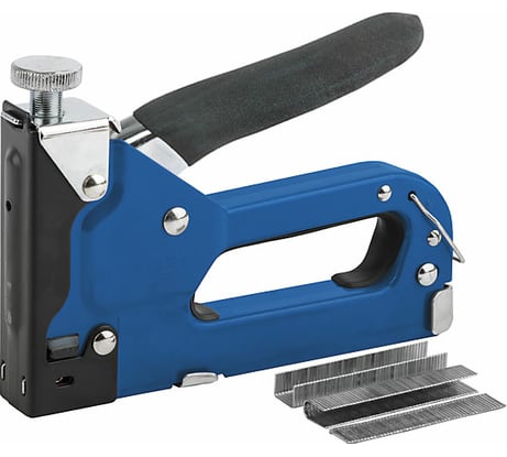 Довольно увесистый, сила удара регулируется винтом, отлично загоняет скобы и в твёрдое дерево и в фанеру.