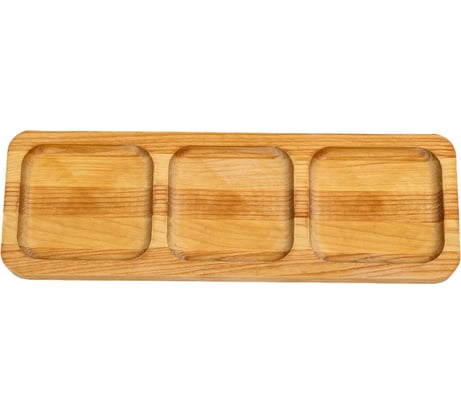 Модная и качественная менажница за смешную цену. Щепок и трещин нет, вырезана ровно. Идеально подходит под соусники, пахнет, как и положено, деревом.