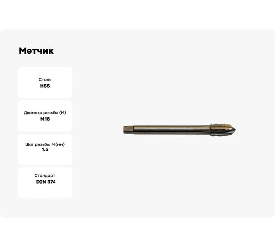 Метчик BTI DIN 374 HSS м/р Тип B M18x1,5 NM62 180150