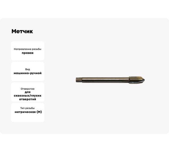 Метчик BTI DIN 371 HSSE Co5 м/р Тип B M10 (x1.5) NM05 M1000