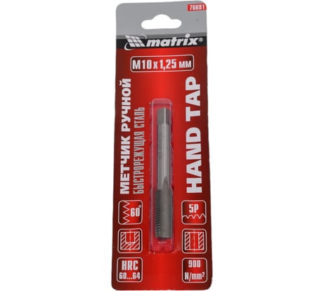 Это не Р6М5. Фото метчика без упаковки на сайте вставлено от другой модели. У данной же модели MATRIX 76671 на обратной стороне упаковки указана сталь HSS 4341. На самом метчике маркировка HSS. Твердость указана 60..64 (для Р6М5, как я понял, должно быть 63 и больше).