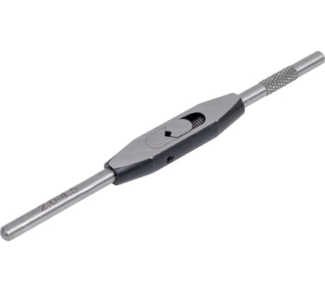 Метчик не по центру, а немного смещен в сторону одной ручки, но для нарезки это не мешает.