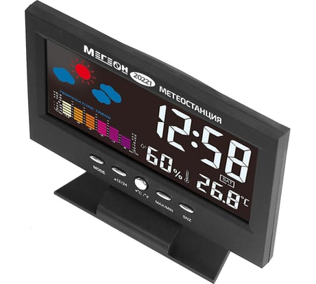 Часы, будильник, календарь (до 2069 года); Функция прогнозирования погоды на ближайшие 24 часа; Возможность настенного или настольного крепления; Радиус действия на открытом пространстве - 30 метров; Внешний температурный сенсор, подключаемый через разъем.