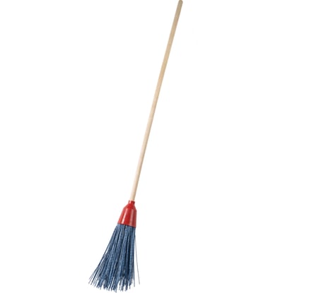Метла клином вниз. Всесто широкого захвата внизу сужается. Черенок короткий. Чтобы мести с нажимом приходится наклоняться