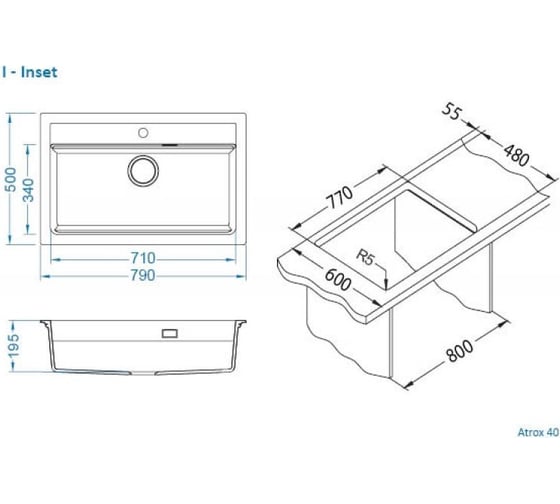 Мойка для кухни ALVEUS OMNI 40 GRANITAL CONCRETE-G81 750x450x198 с сифоном 1150059