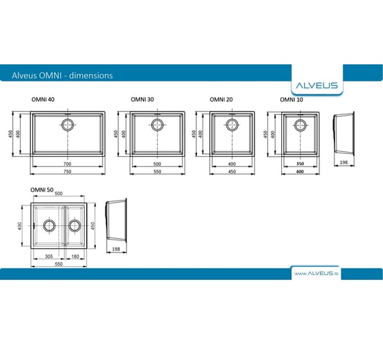Мойка для кухни ALVEUS OMNI 50 GRANITAL DEEP BLACK-G90 BE 550x450x198 мм, с сифоном 1150071