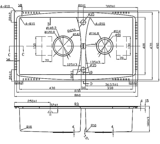 Кухонная мойка Oulin квадратный выпуск OL-0361