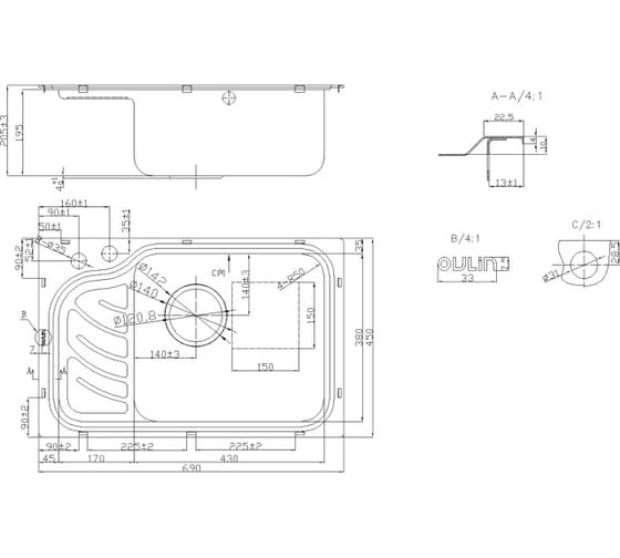 Кухонная мойка Oulin круглый выпуск OL-0361