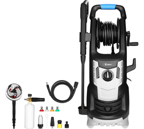 Полностью устроил данный агрегат. Покупался для мойки машины и так по участку дорожки почистить. Испытывал на машине. С Зимы не мыл. Грязи куча было. На сухую залил шампунем, через три минуты смыл. Все супер. Мне так на мойке не мыли. Один минус, утром дождь пошел.))) Рекоменду. Мощности хватает, регулировка насадками. Доволен как слон.