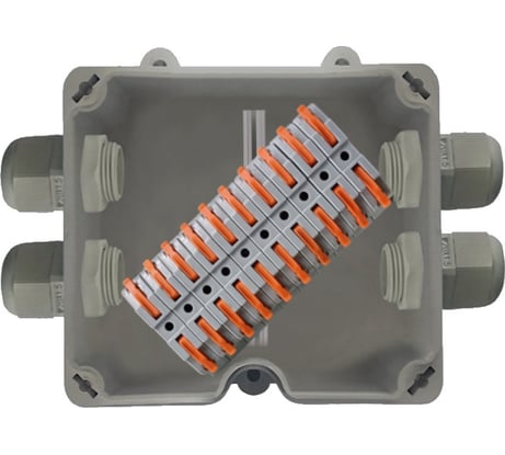 Корпус прочный, металлический. Отверстия для крепления корпуса к несущей поверхности закрываются сверху крышкой коробки.