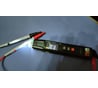Имеется подсветка и звуковой сигнал, а также бесконтактное определение напряжения. Удобно что сам тестер совмещён с одним из щупов