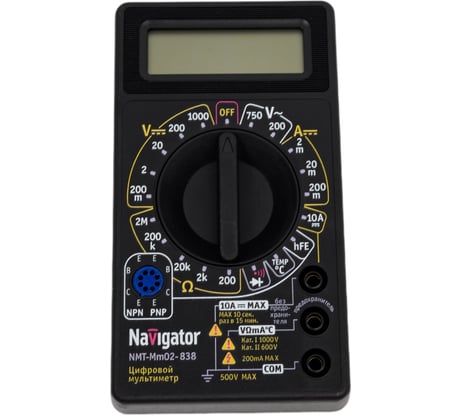 Мой первый мультиметр. Тяжеловато вставляются щупы. Все функции работают.