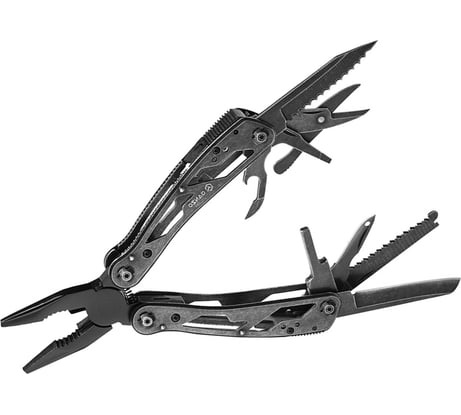 Два рабочих ножа серейтор и основной. Основной, на пару мм короче ножа в Victorinox Huntsman, что не мешает им нарезать буханку белого хлеба по кругу. Острота из коробки позволяет нарезать дубовую колбаску, строгать деревяшку. Сталь 440С. У серейтора размер, острота, как у основного. Рабочая отвертка со сменными битами 1/4" . Ножницы режут ногти, джинсу сложенную вдвое, может и больше, не стал пробовать. Открывашка консерв рабочая. Пила, толще и покороче чем у викса, В деревяшку вгрызается. Без тисков, что то отпилить - не стал пробовать, как по мне, то что ей можно отпилить проще обломать об колено. Шило толще и шире чем у викса. В дерево забуривается. Рабочие плоскогубцы 16 см с возвратной пружинкой. Отдельная шлицевая отвертка. Надежный чехол на металлической заклепке с горизонтальным и вертикальным креплением на ремень (в том числе, армейский).