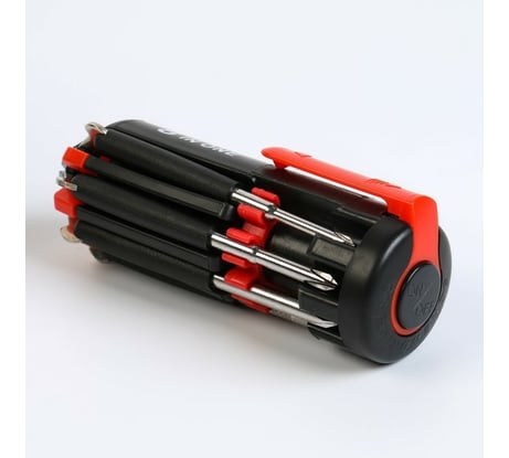 Удачная подборка вариантов отверток, под самые ходовые шлицы. Очень хорошо, что есть крестовая и прямая мини ( похоже на РН 0 и SL 0), как раз дужки очков подкрутить). Места много не занимает. Выглядит достаточно прочно. В разложенном состоянии фиксируется неплохо.