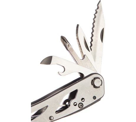 всё заточено с новья как надо. длина обоих лезвий достаточная: можно и еду порезать, и рыбку выпотрошить. куча плоских отвёрток. плоскогубцы хорошие в качестве держалок, губки тонкие, что тоже очень удобно. долговечная крестовая отвёртка. удобный фиксатор. все лезвия открываются наружу - можно пользоваться со сложенными плоскогубцами.