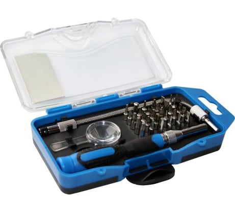 За свои деньги - очень хороший набор. В комплекте есть удлинитель (110 мм). И рукоятка, и удлинитель - магнитные. Рукоятка с трещеткой. Вроде и полезная штука, особенно когда много приходится крутить. Но она как-то легко переключается и порой это происходит случайно. Биты сравнить было не с чем (дешевые пластилиновые наборы из фикспрайса - не в счет). Но, из тяжелого, разобрал уже почти два десятка старых HDD (а там некоторые болтики хорошо затянуты) - пока биты держатся.