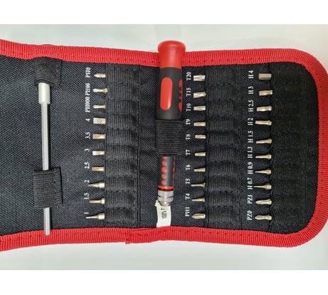 5ть двухсторонних бит в рукоятке, одна в битодержателе. Битодержатель не магнитный, работает за счёт трения, насадки заходят плотно, но люфт небольшой есть. Корпус по ощущениям сделан из того же пластика, из которого делают канцелярские ручки, но он толстый (2мм или более) нареканий не вызывает. Хранение бит "револьверное". Двумя пальцами через отверстия в ручке вращается красный барабан. Ход ступенчатый, поэтому слот с битой четко встаёт напротив отверстия сзади рукоятки. Немного туго, но зато случайно не провернётся. Битодержатель-удлинитель можно выдвигать, увеличивая длину всей отвертки с 135мм до 180мм, держится в рукоятке за счёт "цанги" и выдвигать можно на произвольную длину. Тут нас поджидает основной минус - удлинитель и гайка металлические, а вот сами лепестки цанги из тонкого пластика. Вся отвертка разбирается и собирается обратно без проблем (только с цангой поосторожнее), биту можно установить непосредственно в цангу без удлинителя, тогда люфта вообще нет, если не считать гибкости самого пластика. Сделано в Тайване.